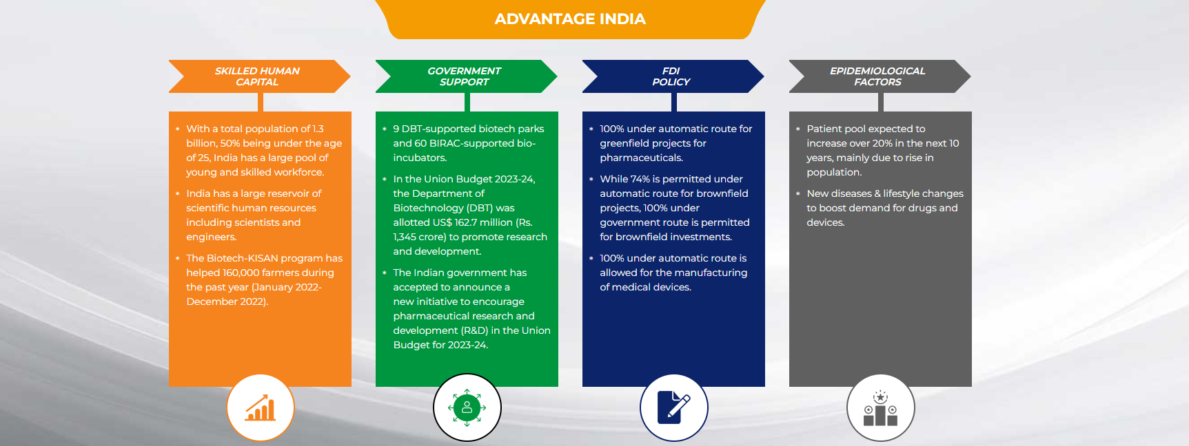 The Indian biotechnology industry is built on entrepreneurship, innovation, developing domestic talent and demonstrating value-based care. Given the long history of diseases in India, the country has accumulated years of experience and scientific knowledge to prevent and treat them. India is working to boost the biotechnology sector under various flagship programmes such as 'Make in India' and 'Startup India'.