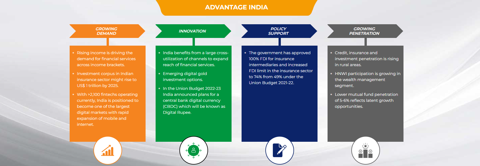 India’s financial services industry has experienced huge growth in the past few years. This momentum is expected to continue. India’s private wealth management Industry shows huge potential. India is expected to have 6.11 lakh HNWIs by 2025. This will indeed lead India to be the fourth-largest private wealth market globally by 2028. India’s insurance market is also expected to reach US$ 250 billion by 2025. This will further offer India an opportunity of US$ 78 billion in additional life insurance premiums from 2020-30.