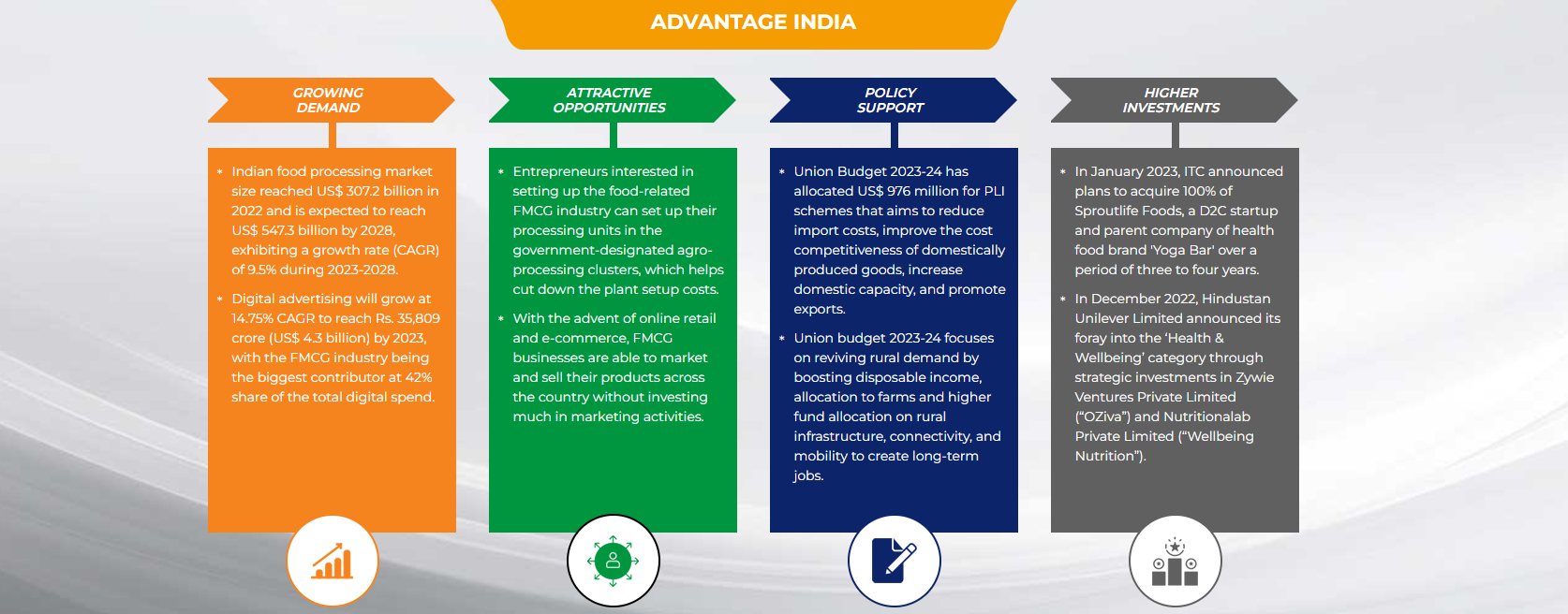 The FMCG sector in India expanded due to consumer-driven growth and higher product prices, especially for essential goods. FMCG sector provides employment to around 3 million people accounting for approximately 5% of the total factory employment in India. FMCG sales in the country was expected to grow 7-9% by revenues in 2022-23. The key growth drivers for the sector include favourable Government initiatives & policies, a growing rural market and youth population, new branded products, and growth of e-commerce platforms. Resilience needs to be the key factor in the manufacturing process, daily operations, retail and logistic channels, consumer insights and communication that will help FMCG companies to withstand the test of time and create more value for consumers in the long run.